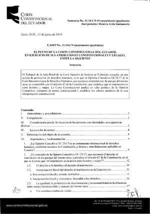 Ramiro Avila Santamaría Quito DM. El documento consta en la Edición Constitucional No. La sentencia de la CC que aprobó el matrimonio civil igualitario el pasado martes 12 de junio tiene ochenta y cuatro páginas que fueron de conocimiento público.