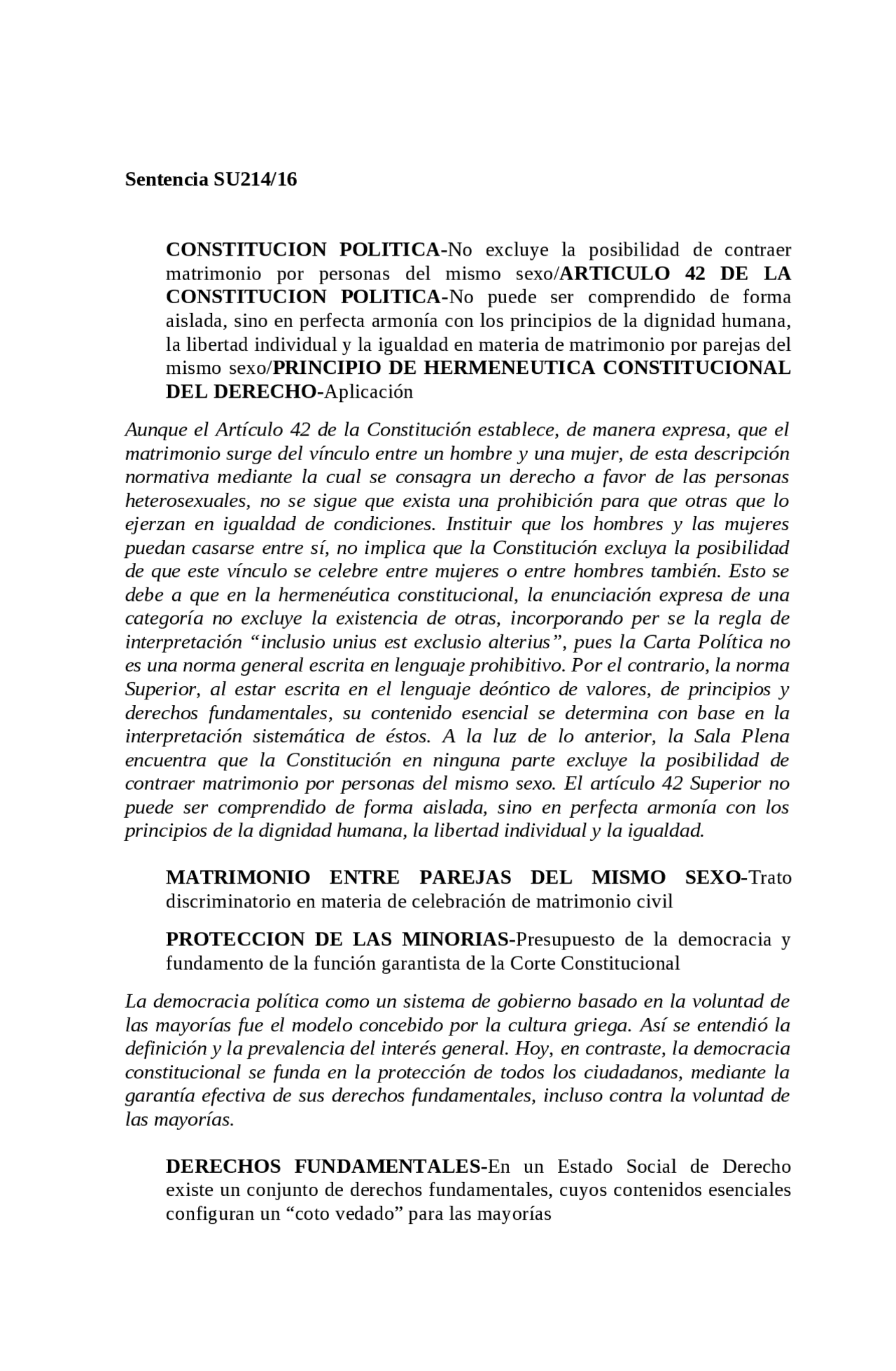 Sentencia Sobre Parejas Del Mismo Sexo Docsity